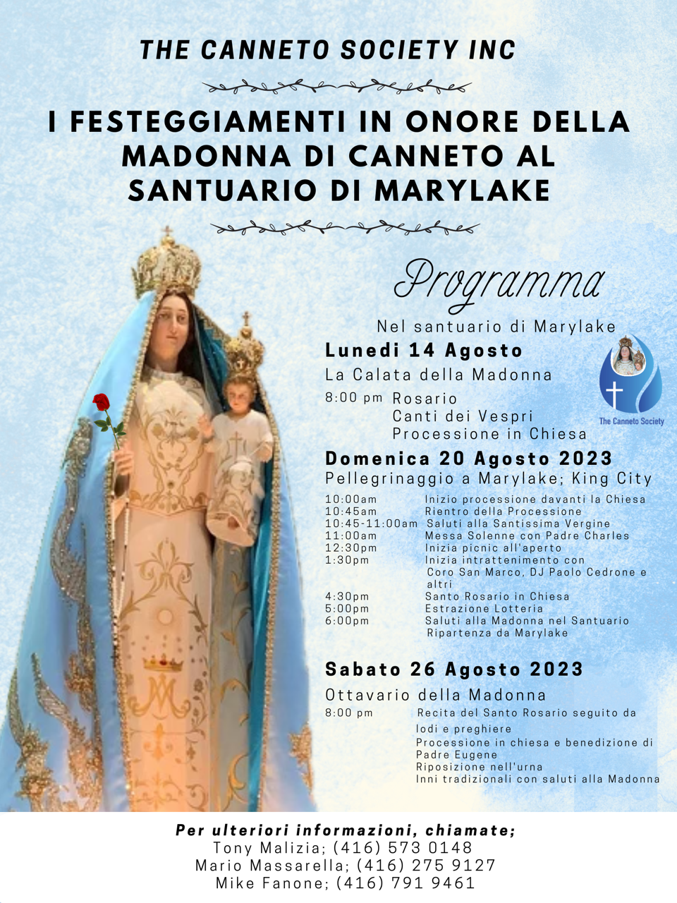 Domenica 20 Agosto: Pellegrinaggio a Marylake, King City