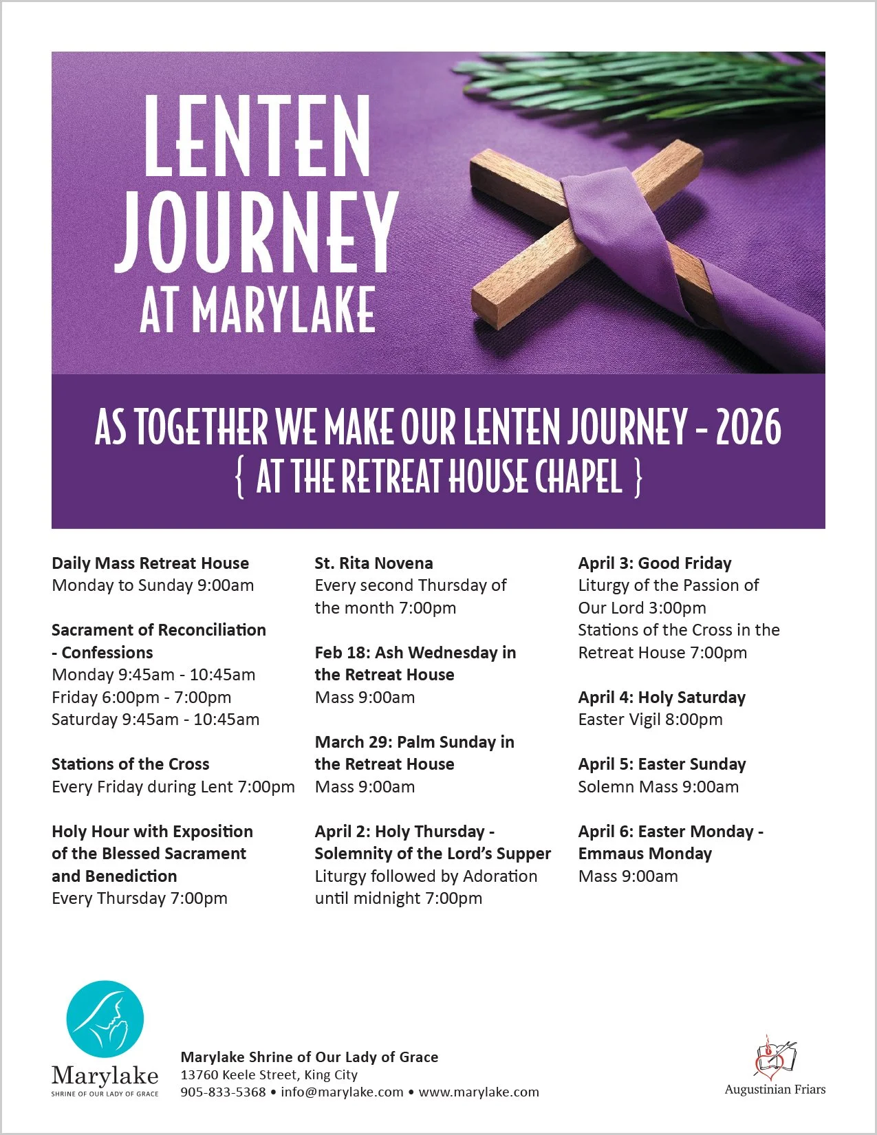 You are cordially invited to join the Marylake community in Eucharist and Prayer during this Holy Season.